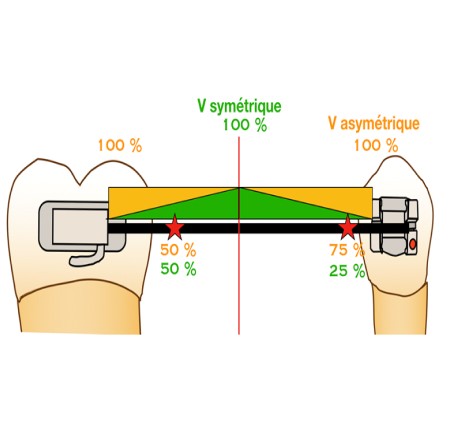 Si la plicature est réalisée proche de l’attache de la prémolaire, le système sera alors dans une situation mixte, avec un V symétrique et un V asymétrique.